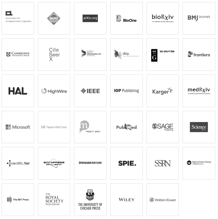 - The most data possible, this means I am looking at a data aggregator who will blend in data from sources like CrossRef, arXiv, etc.